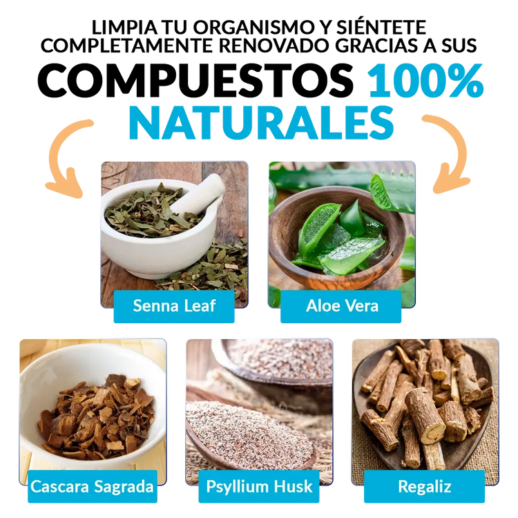 1. Senna Leaf: Un laxante natural que estimula suavemente el tránsito intestinal, facilitando evacuaciones regulares y eliminando residuos acumulados.
